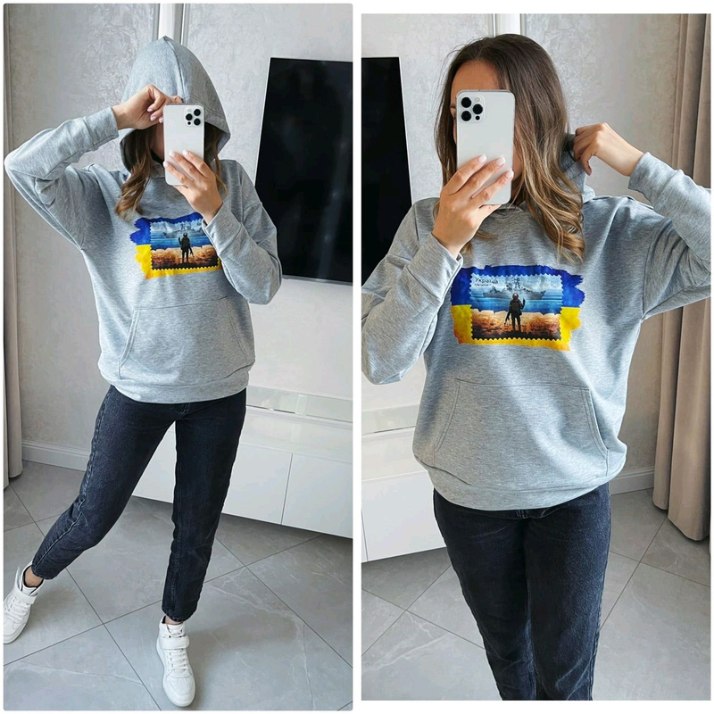 Виробник: Інший виробник Тип одягу: Худі Кілька примірників у наявності Худі Модель 32.5.0012 Розміри 42-46, 48-52 Тканина двонитка Універсальне худі унісекс, вільний крій, спущене плече. Спереду кишеня-кенгуру. Рукави та низ худі на манжетах, зручний глибокий капюшон. Кольори блакитний, чорний, білий, жовтий, оливковий і сірий Якісна накатка "МАРКА"