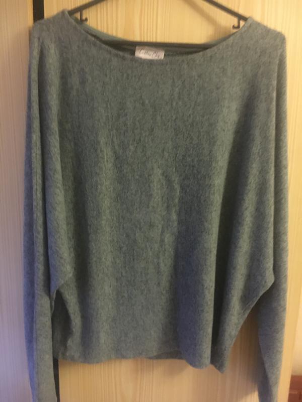 Рукав от горловины 80, длина 60, по груди свободно, модель летучая мышь, меланж серо-зелёный