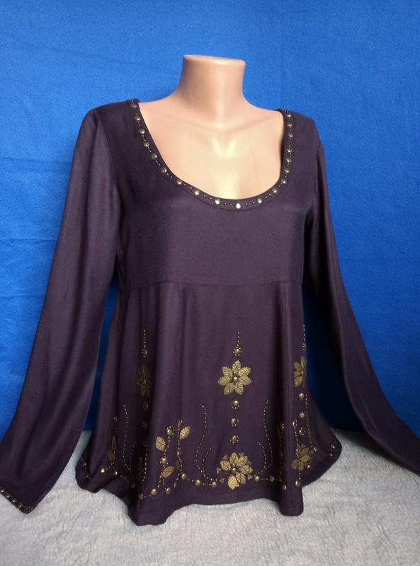 --Кофтина бренда Naf Naf Naf в очень хорошем состоянии. Дырь, пятен нет, отсутствуют только 4 металлические элементы из орнамента внизу, заметно, если присмотреться. --Цвет: глубокий баклажановый. --Ткань: тонкая, ниспадающая, приятная к телу. Состав: 100% вискоза. --Размер указан L, на наш-48-й. --Вымеры: ширина под подмышками: 50, полуобъем груди по вытачкам-47, ширина по линии подреза под грудью-45, плечо-7,5, длина рукава-60, длина по спине от горловины до низа-62 см. Перешлю Укр и Новой по почте.