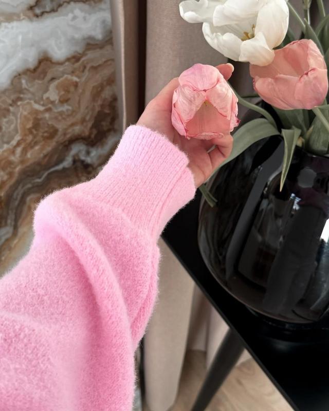 Пухнасті светрики 🤍 009238 ▫️Колір: молочний, рожевий, блакитний ▫️Розмір: універсальний ▫️ Склад: 77% акрил, 23% поліестер ▫️ Ціна 990грн. Рукав: 70 (від горловини) Півобхват грудей: 57-70 Довжина: 49