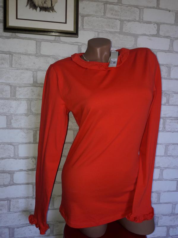 Красивый коралловый тон указан р 14 можно 12-14 Хороший приятный качественный трикотажик сток/ есть запах обработки дл-63 пог- 45 рукав-62,5 с рюшей