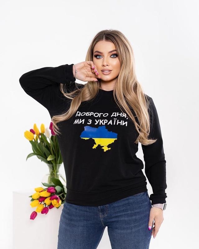 Тип одягу: Спортивні светри Кілька примірників у наявності Розміри 42-44;46-48; 50-52 Колір: чорний Тканина: двонитка, рибана, Принт: накат Довжина: 64-70 см Довжина рукава: 65 см ЗАМЕРЫ изделия на ФОТО Розмір: 34 / XS / 42 Колір: Чорний