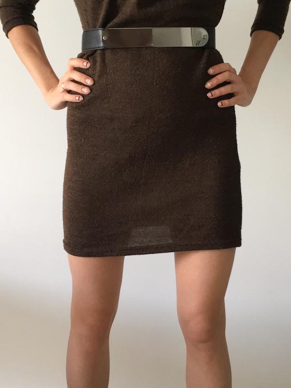Короткий свитер, который можно одевать как платье под пояс. Немного закашлатилось, хотя носилось около 5 раз. В составе 50% шерсти 50% акрила