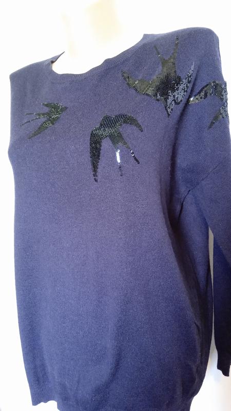 цвет синий, ластовицы из пайеток, длина70, пог66,рукав от горловини71,хороший состав трикотажа есть вискоза,коттон,андара