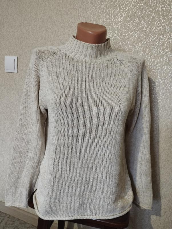 Светр в гарному стані,з золотистою ниткою, гарно переливається,44-46р.Вся довжина 58см, довжина рукава від горловини 70см,, ширина в грудях 44см., розбираю шафу.
