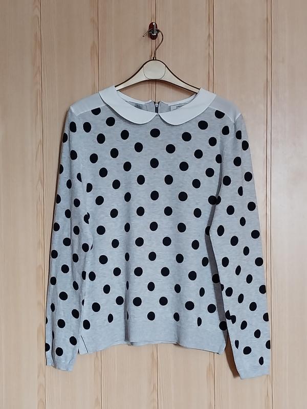 Вискозный свитер в горошек Papaya. Состояние новой вещи. Размер 16, подойдет на размер 50-52. Состав: 72% вискоза, 28% полиамид. ПО плечі- 42 см ПО груди- 49 см Довжина- 59 см Довжина рукава- 63 см