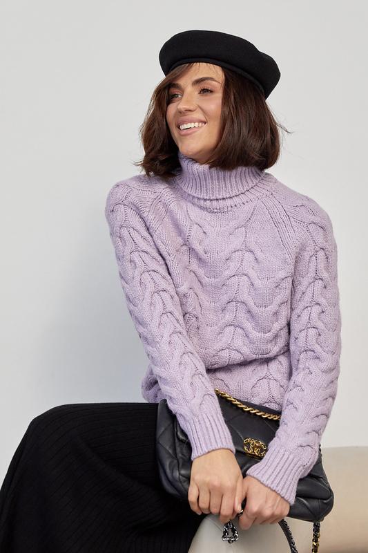 Женский свитер из крупной вязки в косичку - лавандовый цвет, l (есть размеры)