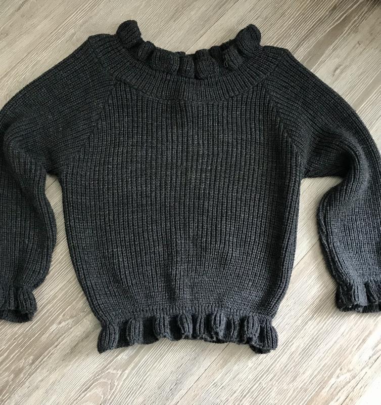 Свитер асфальтного цвета, верх и низ имеет резинку, может приспускаться плетко.