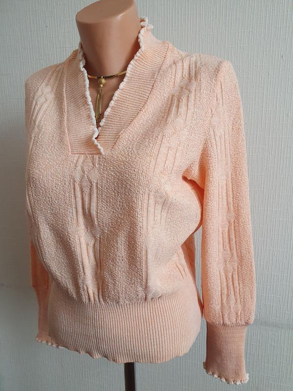 Вязаный свитерок В идеальном состоянии, бирки отсутствуют Цвет – меланж, переплетение оранжево-персиковых и белых нитей. Размер не указан, подойдет примерно на 44-46 укр.размер, но лучше ориентируйтесь на замеры Носится свободно Замеры вещи: Полуобхват груди – 49 см (тянется до 55 см) Ширина по низу – 34 см (тянется до 52 см) Плечи – 40 см Длина рукава – 58 см Длина джемпера от плечевого шва – 55 см. ........................ Состав: бирка с составом ткани отсутствует ............................... Безпечною оплатою і наложкою даний товар не відправляємо Возврата и обмена нет! ......................................... SALE! При покупке 2-х и больше вещей - скидка 10% *** Если Вы делаете заказ через кнопку "Купить" скидку сделать не смогу, поскольку в этом случае сайт снимает с меня процент за продажу с полной стоимости вещи, указанной в заказе. Для получения скидки делаете заказ через кнопку "Задать вопрос"! ......................... Состав: 100% акрил, кружево: 100% коттон ............................................. Доставка: Отправка после 100% предоплаты на карту. Доставка: Новая Почта, Укрпочта (оплата при получении) на следующий день после оплаты (кроме выходных). ВОЗВРАТА И ОБМЕНА НЕТ! В каждом объявлении есть детальное описание и замеры вещи. Как сядет на Вас вещь, я предугадать не могу, поэтому делайте заказ обдуманно, сверяйте свои параметры с указанными замерами. Я с удовольствием отвечу на все интересующие вопросы и предоставлю дополнительные замеры и фото ДО оплаты и отправки товара