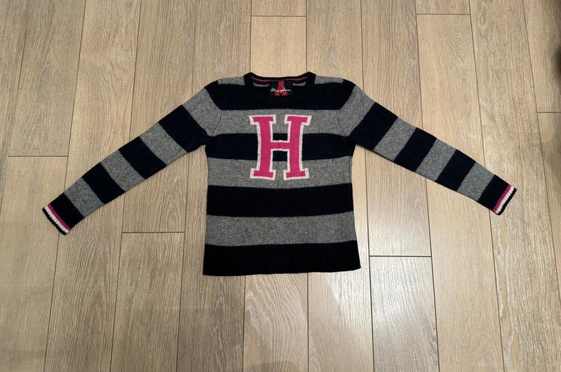Свитер очень теплый: 80% шерсть, размер S, но можно и на XS. Состояние отличное, без недостатков.