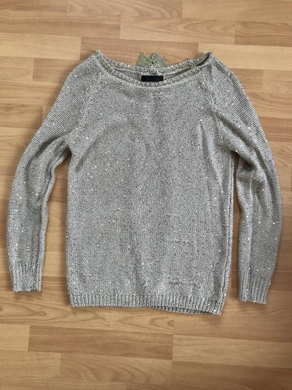 Вʼязаний светр із стразами. На спині виріз.