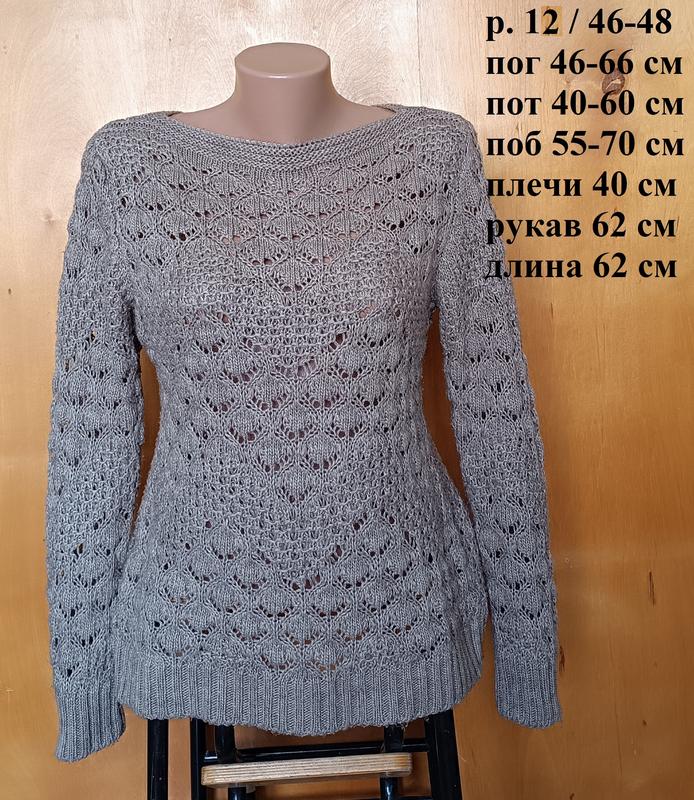 Р 12 / 46-48 утонченный ажурный вязаный свитер джемпер кофта с узором ручная работа