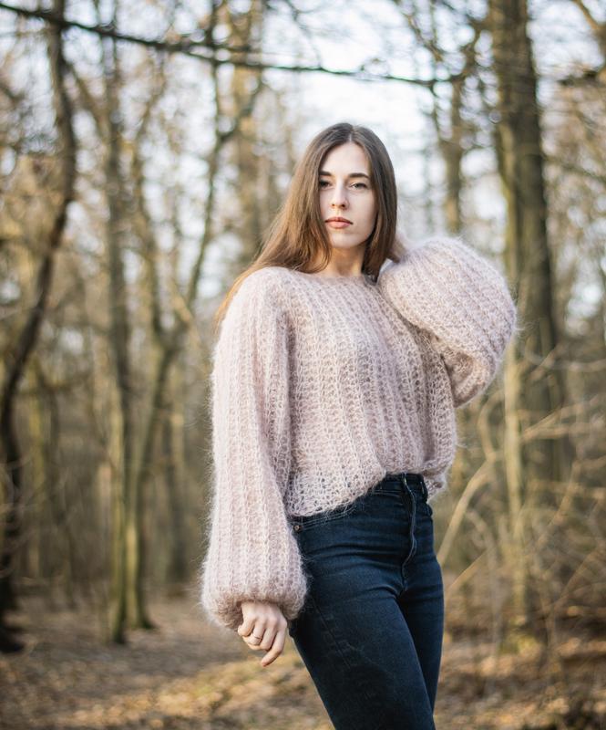 Стильный свитер крупной вязки бежевого цвета из высококачественного мохера (65%) Может быть изготовлен под индивидуальные параметры и в других цветах