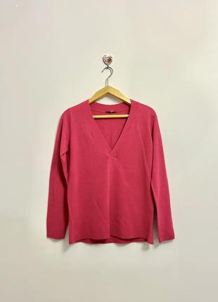 Розмір М Насичено малиновий (камера не дуже передає відтінок 😔) Усі біркі зрізані Півгруди 47 см По низу 50 см Рукав 60 см Довжина кофти 64 см