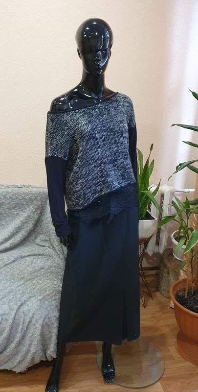 Свитер с кружевной отделкой известного бренда. Размер L, подойдет и на хl. Есть нюанс на кружеве. Надевала несколько раз. Длина с кружевом-55 см Ширина поб 47 Скину доп.фото, здесь не прогружаются..