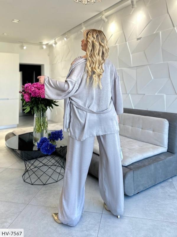 Кардиган HV-7567 5953 Розмiри: 42-54, 56-70 Матеріал: віскон кристал з легким блиском. Додається пояс. З боків розрізи з боків. Довжина виробу 70 см. Заміри по виробу, без урахування запаху і свободи: 1 р (42-54): ог і ОС 85-120 см 2 р (56-70): ог і ОС 126 - 150 см.