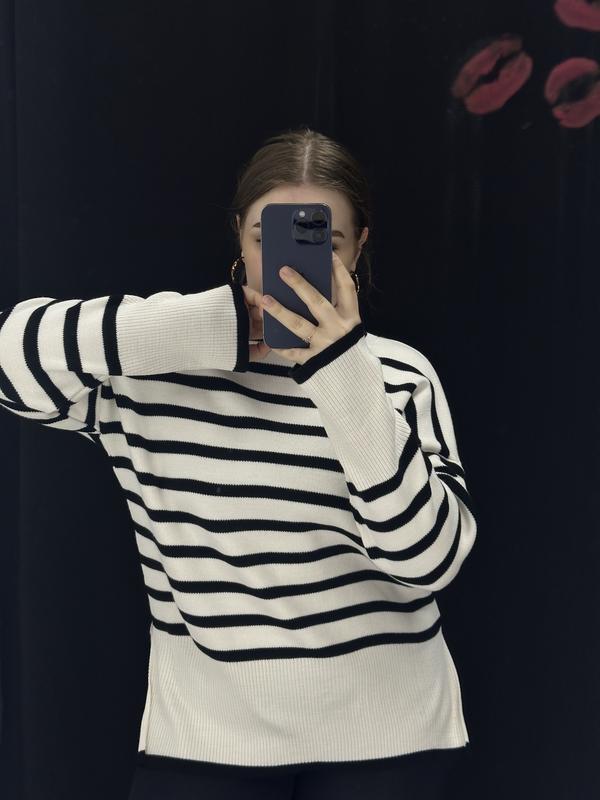 Свитер женский удлиненный присутствуют разрезы по бокам также высокая горловина, свободный рукав