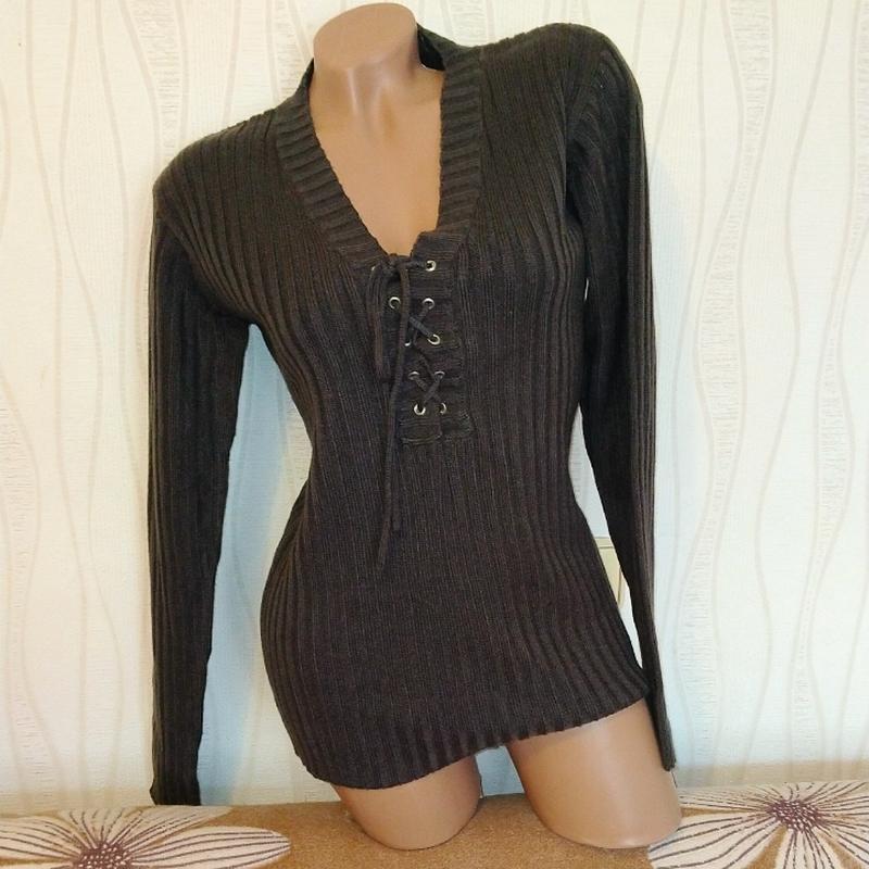 Жіночий светр у рубчик із V-подібним вирізом та шнурівкою спереду, такі светри підкреслюють фігуру. Назва: Светр у рубчик зі шнурівкою спереду. Особливості: V-подібний виріз, довгі рукави, ребриста в'язка (рубчик), шнурівка спереду. Стиль: Повсякденний, може бути частиною образу в стилі Y2K або гранж.. розмір пише 38/40 тягнеться дуже добре 📏 довжина 63см в грудях півобхват 43см довжина рукава від шиї 70см