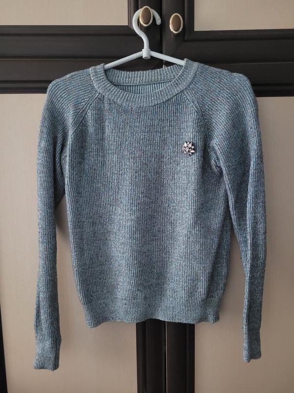 кофта с цветными нитями в синем цвете одевались разы 2 с вшитой брошью, биркой, размер с-м хорошо тянется для более детальной информации пишите в личные