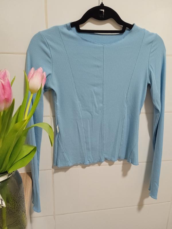 Дуже ніжний голубий колір Тканина дуже мягенька та приємна на дотик Матеріал прекрасно тягнеться Розмір - S Стан - нова