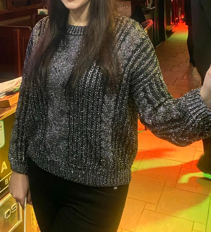 Свитер женский крупной вязки черно-серебристого цвета Оверсайз Одягала 2 рази Замеры на фото Размер М