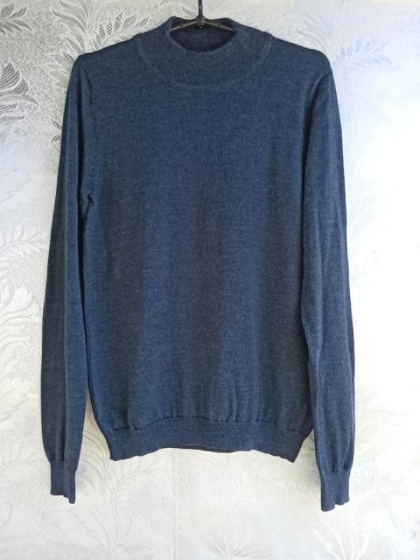 Синьо-сірий мериносовий светрик. р.М. У вільному стані плечі 36.груди 44. рукав 65.довжина 63.стан нового.
