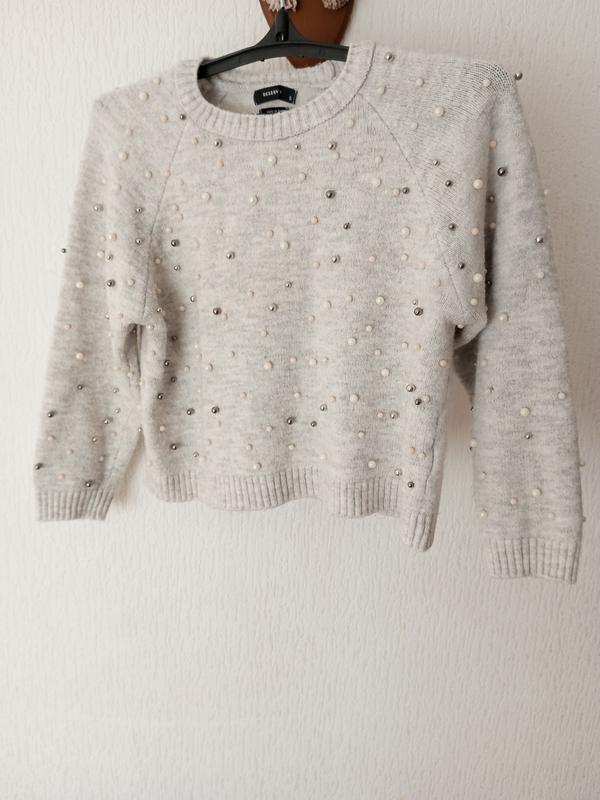 мягкий, изысканный свитер декорований перлинами размер S-M Турция длина 46 см рукав 54 см от головы полуобхват груди 46 см