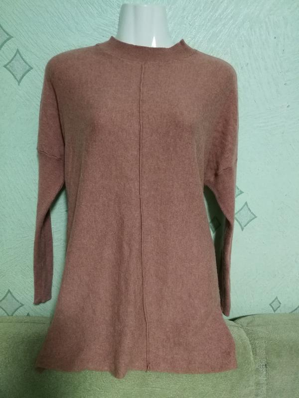 Длинный свитер,размер 38-40, Б/У,теплый,приятный к телу по бокам разрезы,носится свободно,теплый в составе шерсть,вискоза,есть малозаметные катышки.Длина 69 см,плечи спущены,от горловины длина рукава 65 см,свитер оверсайз,носится свободно,ПОГ и по низу 56 см.