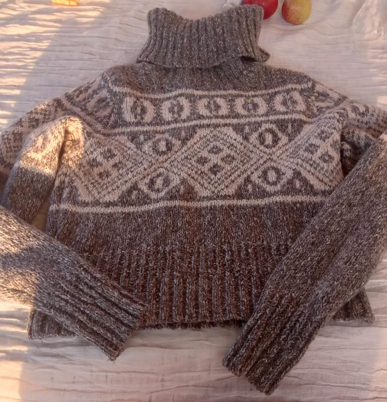 Кароткий свитерик с орнаментом.р.XS. плечи 33.грудь 42.рукав 61. длина 45.