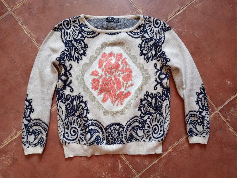 свитер в идеальном состоянии очень теплый и приятный к телу, длина 58,полам объем груди 50