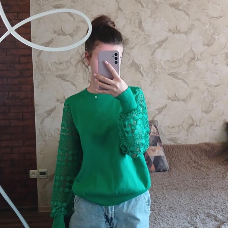 Зелена кофтинка Об. груди-64см Об. талия-86см. размер: оверсайз Длина-56см. Длина рукава-61см.