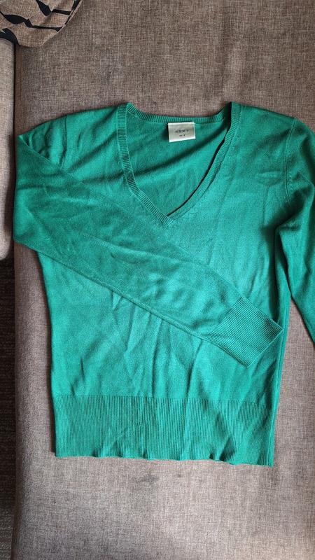 Очень красивая приталенная кофтина, насыщенного зеленого цвета. Размер 36. Замеры: рукари 61, плечи 34, подмышками 43, длина 55. Тканина акрил