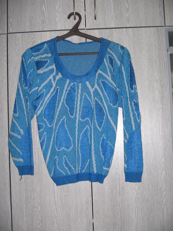 Свитер голубой женский.Ширина по груди 53 см,плечи 45 см,талия 45 см,длина 57 см,рукав 54 см
