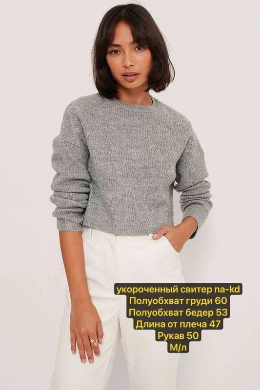 укорочений светр na-kd Напівобхват грудей 60 Напівобхват стегон 53 Довжина від плеча 47 Рукав 50 М/л Арт. #1002