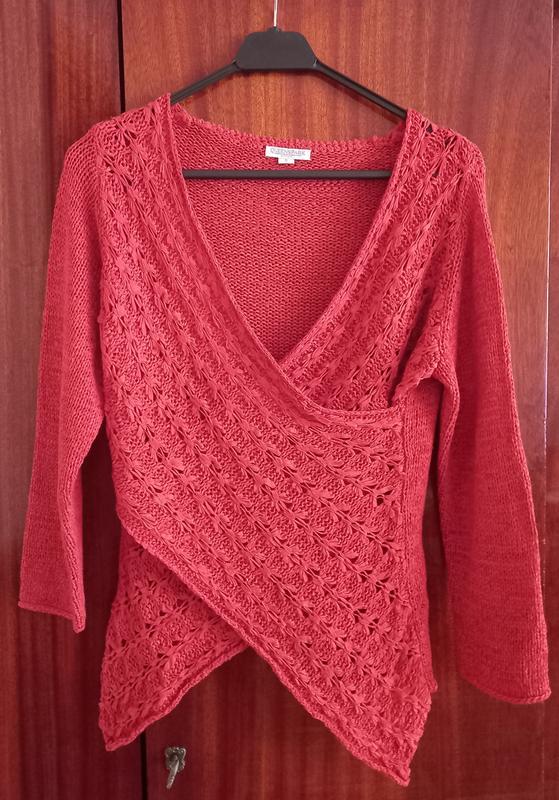 Женская кофта кирпичного цвета с длинным рукавом. Длина - 52 см, ОГ - 47 см
