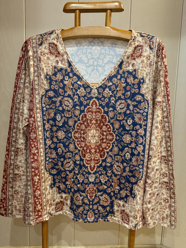 В наличии красивая кофточка. Размер указан XL...по замерам идёт на 18. Состав: 100% полиестер...ткань мягкая и приятная к телу, хорошо тянется. Полуобхват в груди (ПОГ) - 60 см и ещё хорошо тянется Длина - 68 см. Плечи - 44 см Длина рукава - 63 см. Полуобъем в бедрах (ПОБ) - 61 см и ещё хорошо тянется