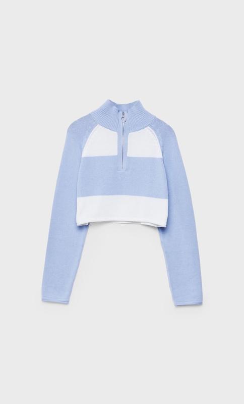 Укорочений светр Stradivarius тонкої вʼязки із приємної бавовняної тканини. Виглядає стильно та красиво. В гардеробі вдало поєднується з джинсами, шортами, велосипедками, спідницями.