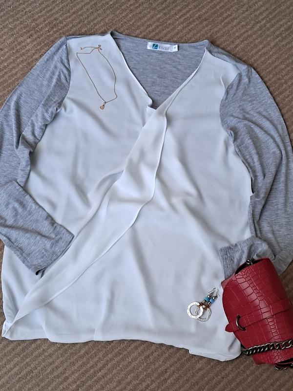 кофточка новая, без дефектов красиво тянется легкая к телу материал вискоза спереди идет как блуза, сзади тоненький трикотаж Замеры: ОГ 48см Длина 64см рукав 61см размер указанных М