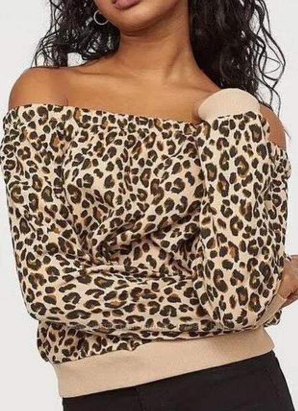Женский леопардовый мирер с открытыми плечами от бренда H&M. Хорошо тянется. Состав: 60% хлопок, 40% полиэстер.