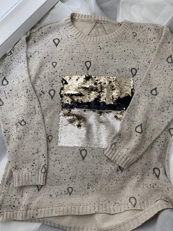 Свитер с люрексовой нитью. Актуальный свитер с дырочками и пайетками💫 🕊️Замеры: Обхват груди 49 см Длина спереди. 60 см Длина сзади 65 см Длина рукава от плеча 49 см Тканина 50% вовна 50% акрил