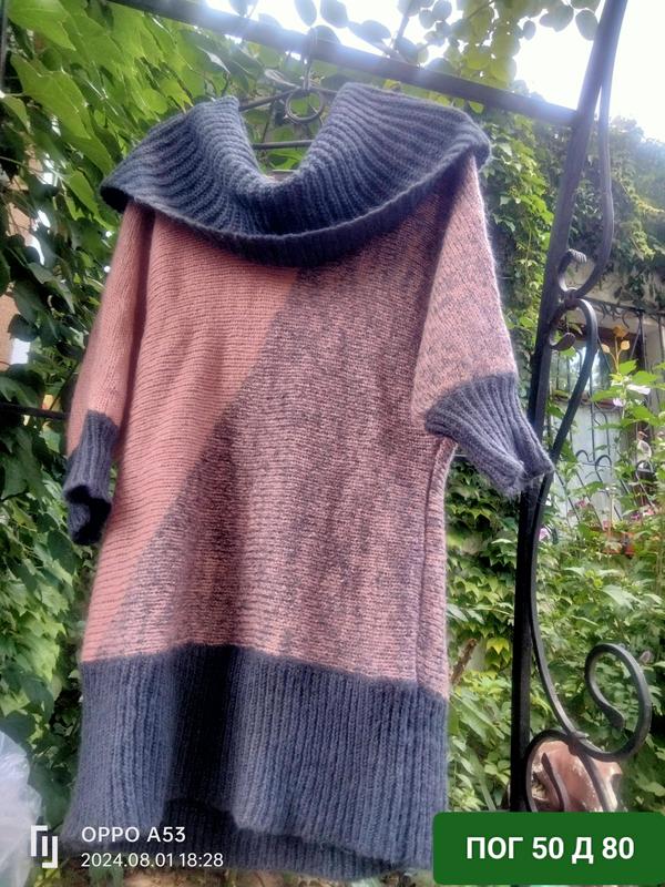 Великолепное сочетание цветов граффити пудра меланж, объемный хомут, рукава 3/4 спущенные, манжеты