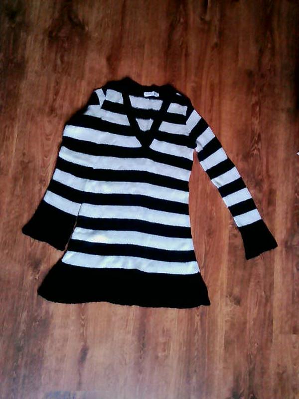 Чорне-біла смужка, довгий, теплий.Розмір на бірці 36.