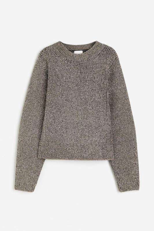 Цена 2700 Вязаный свитер в рубчик с блестящими нитями в утку. Приталенная модель с круглым вырезом горловины, формованными рукавами, которые затягиваются на манжетах, и приталенной талией, подчеркивающей силуэт. Артикул: 1211378001 HM
