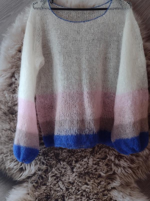 женский свитерик "паутинка" новый, ручная работа. размер от s до xl на s будет овер сайз на xl будет более приталенный замеры длина 60 см пог в свободном состоянии 55см тянется до 65см длина рукава от горловины 68 см рукав пышный,плечо спущенное.