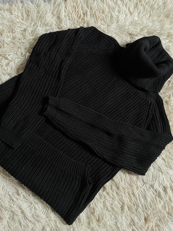 Черный красивый вязаный гольф с оригинальной длинной горловиной Размер ХС-М Стан - идеальный Длина -65 см Длина рукава-63 см Если интересны дополнительные фото - убедитесь в сообщения)