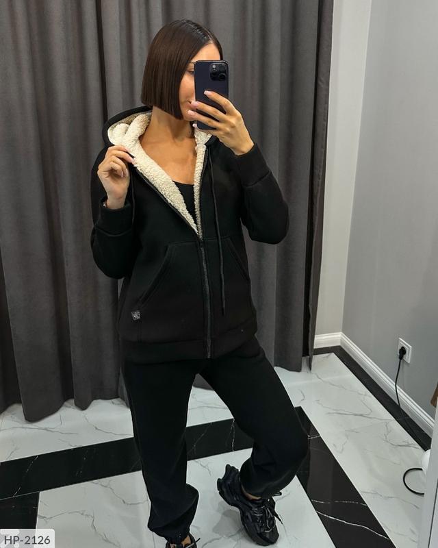 Кофта HP-2126 арт. 540 Розміри: 42-44, 46-48 Тканина: Турецька тринитка на флісі Підкладка: Тедді Якісна фурнітура Колір: малина, джинс, чорний ------------------------ Колір не випирається, не линяє. Тканина не деформується, не сідає, не кашлатится.