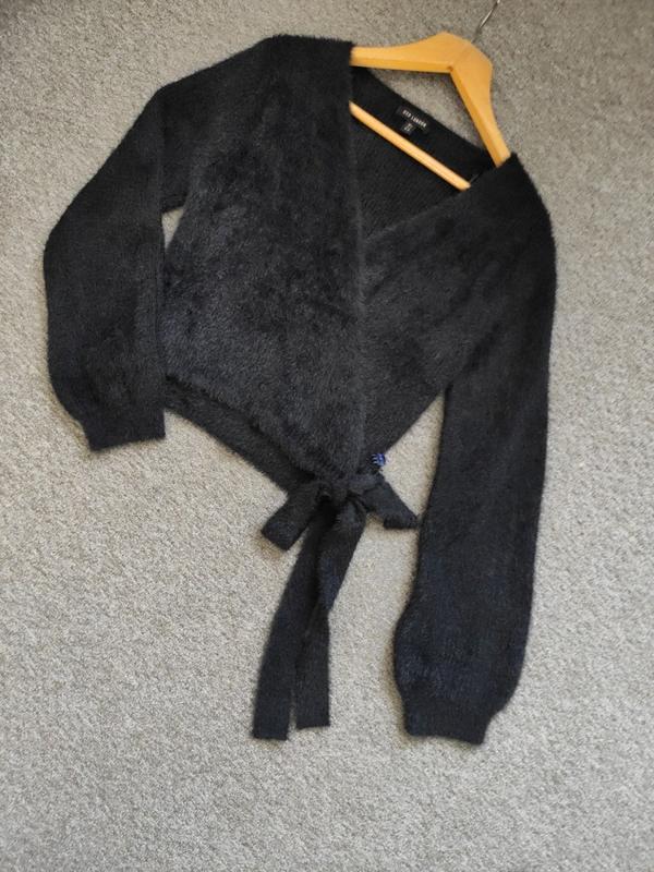 Укороченная кофта на запах с красивым рукавчиком Ткань ворсистая и толстая, как шубка Пог-46-49 По низу (талия)-41-45 Дов.рукава от горловины-74 Длина изделия-48
