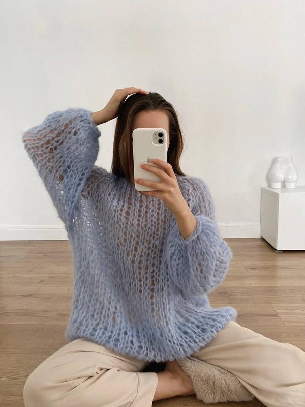 Стильный и женственный свитер-паутинка из премиальной шерсти альпака. Очень нежный и мягкий. Ручная работа.