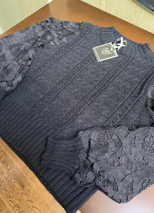 Новий з бірками, дуже гарне кружечок на рукавах, двошарове: кружево і окремо сітка. Светр дуже мʼякий і теплий Розмір С, на фото вдягнуто на параметри: Зріст: 168см Груди: 90см Талія: 61см