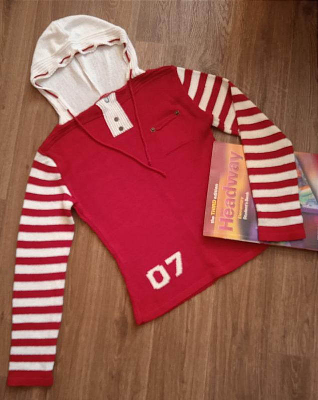 Свитер с капюшоном, удобный, приятный к телу.